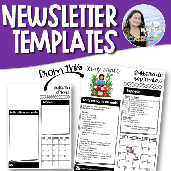 NOTE: The headings, days of the week and months are in FRENCH but the instructions and example text are in ENGLISH! If you need something changed or added please contact me at: msmatthewslittlestclassroom@gmail.com