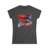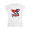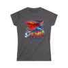 The woman's softstyle tee is a more feminine take on the classic tee. The sleeves are shortened to reveal some shoulder. The fabric is 100% ringspun cotton for all solid colors. The shoulders are taped with twill to prolong durability. The collar seam is reinforced with ribbed knitting.