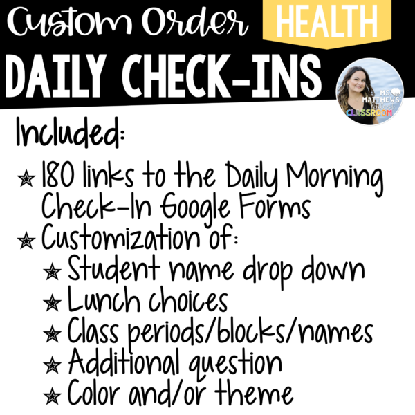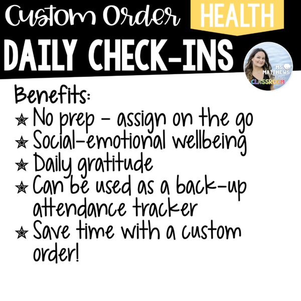 Embrace the power of personalization with our Daily Morning Check-In, and watch your classroom engagement soar to new heights. Start your day with a smile and a connection with each student, as you embark on a journey of learning and growth together. Take charge of your mornings today!