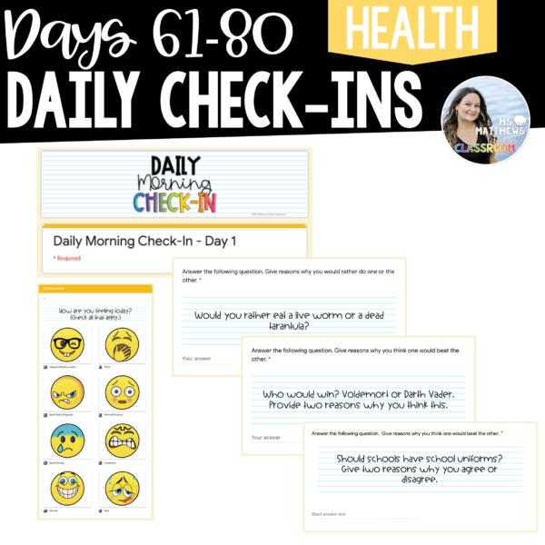 Elevate your morning routine with our Daily Morning Check-In Google Forms for Days 61-80, unlocking continued connection, engagement, and growth. Join us on this enriching journey as we empower students and cultivate a positive learning environment. Get ready for meaningful interactions and self-reflection!